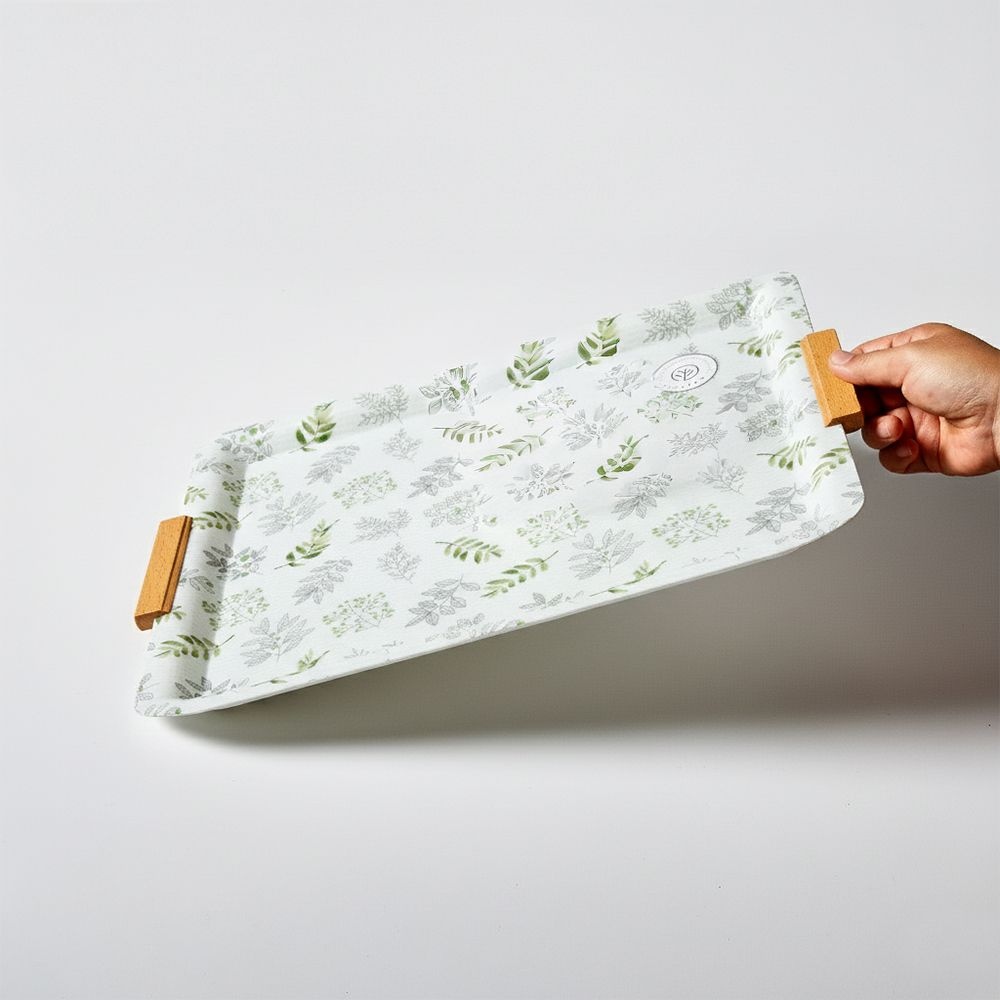 그린티 우드 손잡이 사각 트레이 카페 쟁반