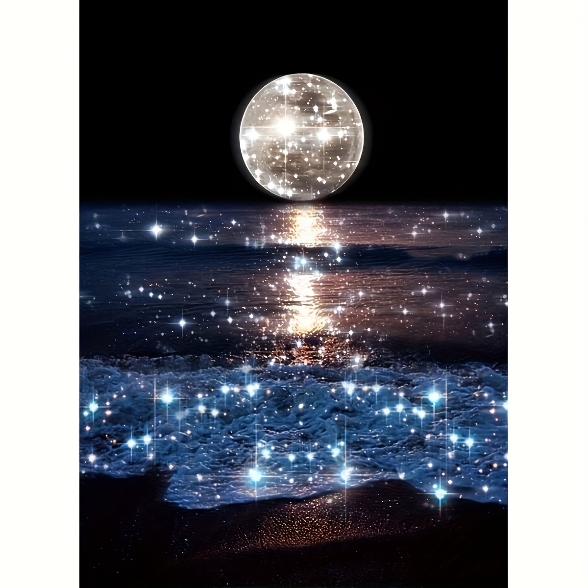 TEMU 바다 전망 달빛 바다 전망 5D DIY 페인팅 세트, 풀 라운드 캔버스 아트 홈 벽 장식, 거실 침실 수공예 세트 - 11.8x15.75인치