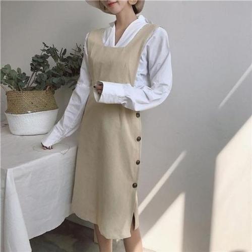 [엄지척]점프슈트 소녀소녀한 멜빵원피스 옆단추 면점프수트원_19869790_667501