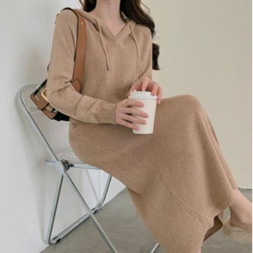 [셀럽하우스]긴소매 FDHN6657 원피스 골지 - 720 후드 로미홀리-니트 롱원피