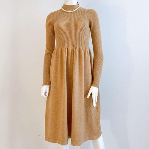 [셀럽하우스]니트 FNBI6430 긴소매 카멜 원피스 허리 미디 봄 하이엔
