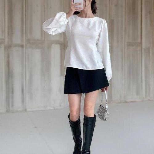 [신상오픈런]여성 가을 하객 스타일 리본 장식 퍼프 소매 여리핏 블라우스