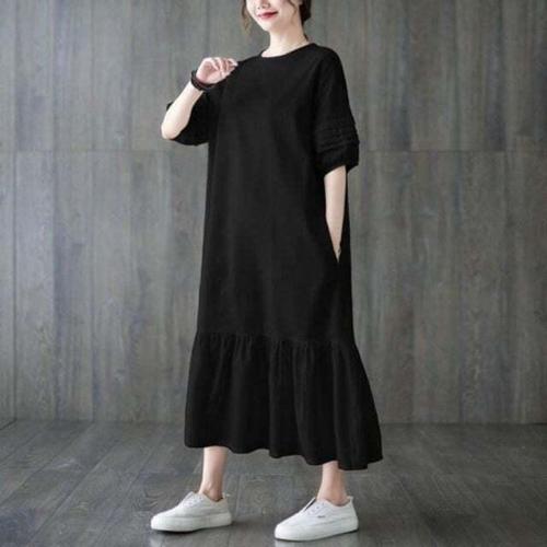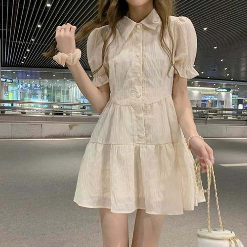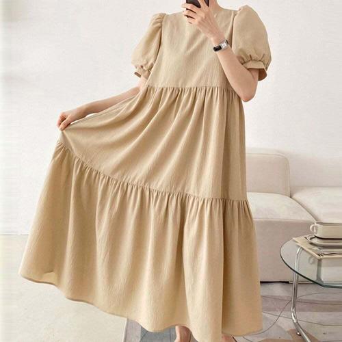 [셀럽하우스]퍼프 IDGW9530 베이직 셔링 원피스 여성 올데이 캐주얼 반소매