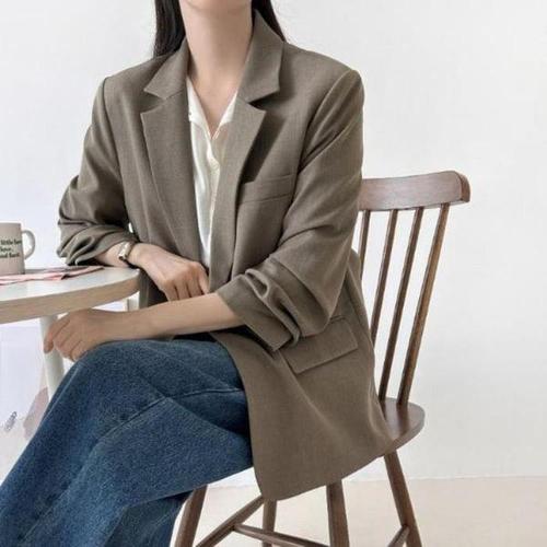 [다잇템_패션]여성 베이직 슬릿 롱슬리브 소매셔링 싱글 자켓