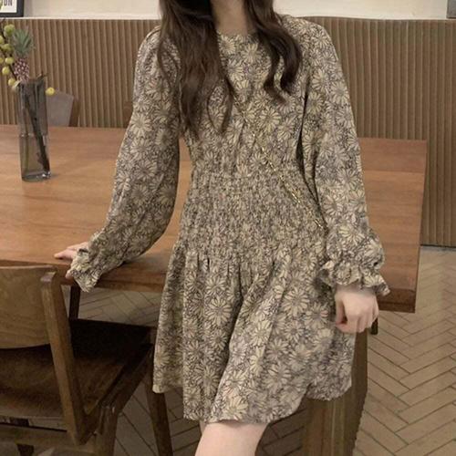 [셀럽하우스]플라워패턴 ZAAG6174 스모크밴딩 원피스 셔링 소매밴딩