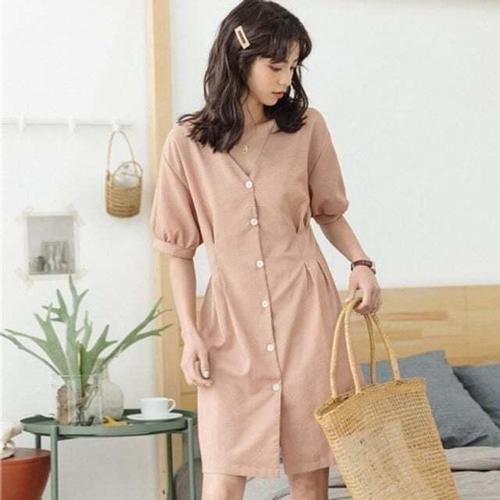 [셀럽하우스]여성 DOKY7814 데일리 브이넥 퍼프소매 H라인 원피스 패션의