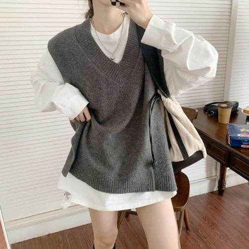 여자 2컬러 감각적인 니트베스트 레이어드 니트조끼 WFKOD1Z