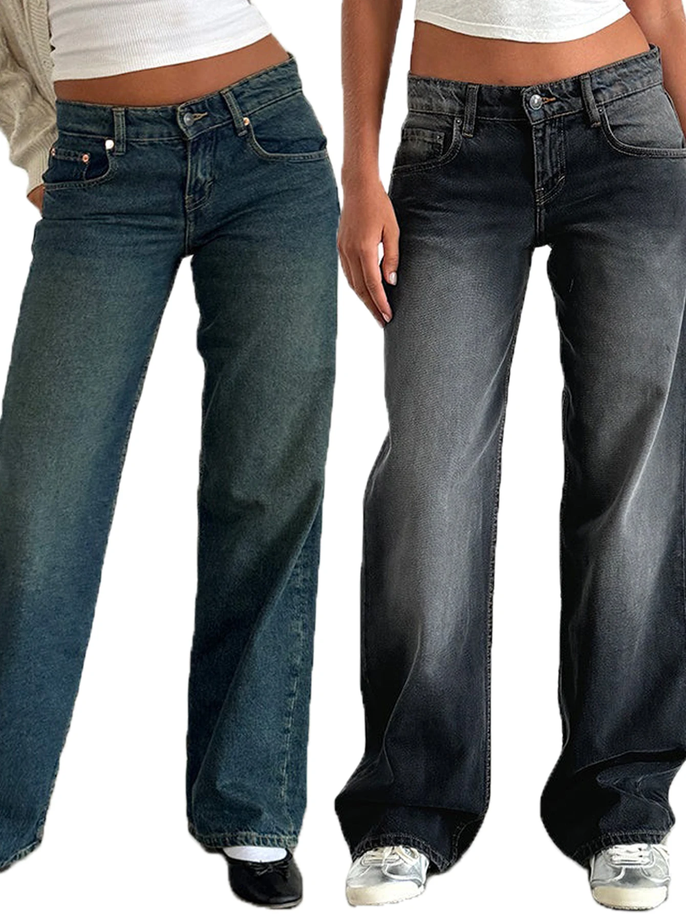 여성을위한 새로운 낮은 허리 스트레이트 레그 청바지 패션 느슨한 데님 와이드 레그 바지 캐주얼 여성 의류 XS-XL 드롭 배송