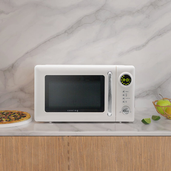 쿠잉전자 미니 레트로 크림 전자레인지 버튼 다이얼식 20L