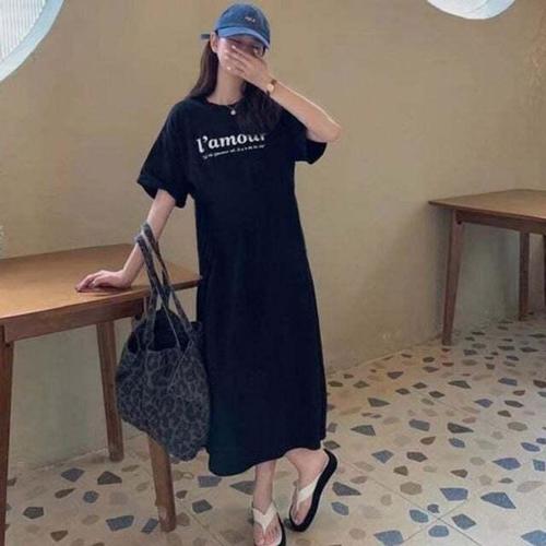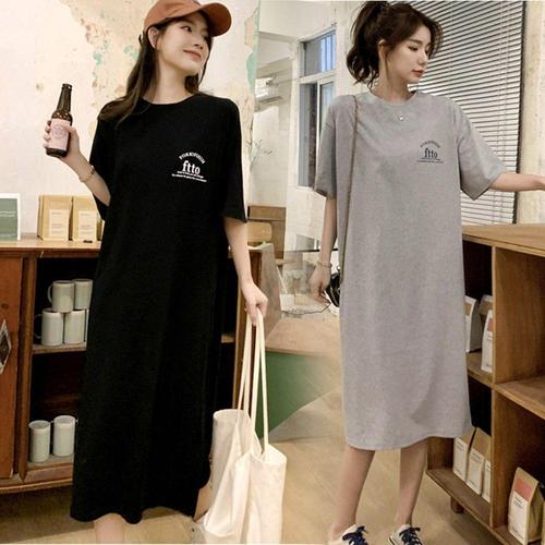 [셀럽하우스]쿨 NMPU3223 홈웨어 외출 데일리 앞뒤레터링 트임 반팔원피스