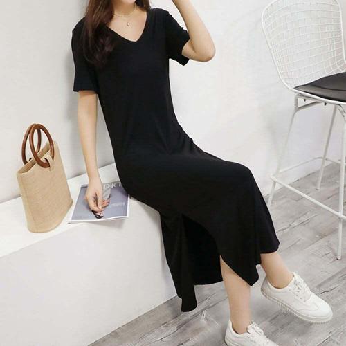 [셀럽하우스]홈웨어 KJYB6912 실내 편한 여성 밑단 트임 롱 반팔 원피스