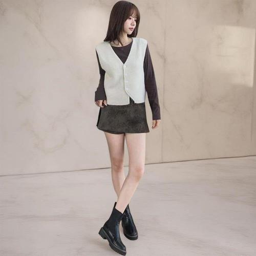 [옷자락] 여성 빈티지 V넥 솔리드 컬러 버튼 니트 조끼