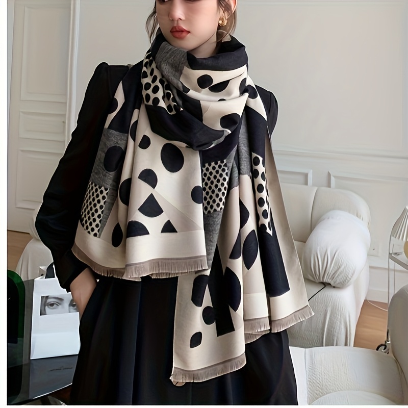 TEMU 여성용 겨울 따뜻한 숄 칼라 스카프 - 긴 도트 무스트레치 스카프, 가을/겨울용, 포근한 숄 또는 넥 랩, 손세탁 가능한 우아한 캐주얼 아우터웨어 액세서리