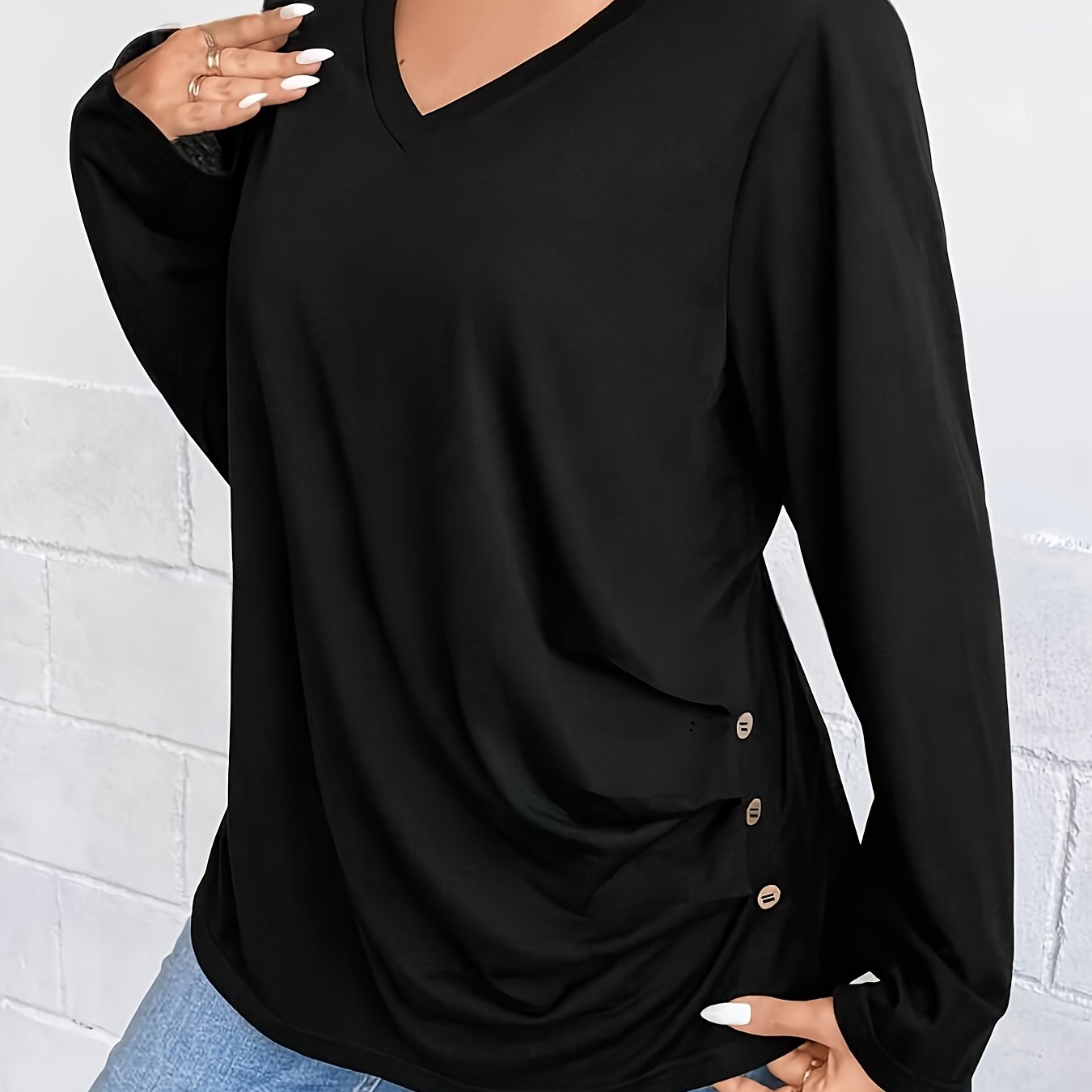 TEMU 패셔너블 여성 티셔츠 | 캐주얼 V넥 단색, 레귤러 길이, 모든 계절에 적합