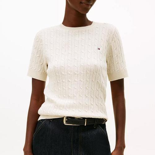 [해외배송] 타미 여성 숏슬리브 케이블 니트 스웨터 Oatmeal
