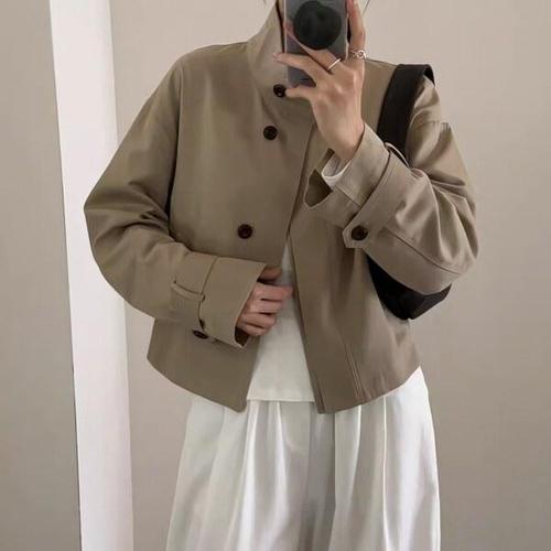 POMTOR 여성 캐주얼 트렌디 데일리 버튼식 숏 트렌치 코트 자켓