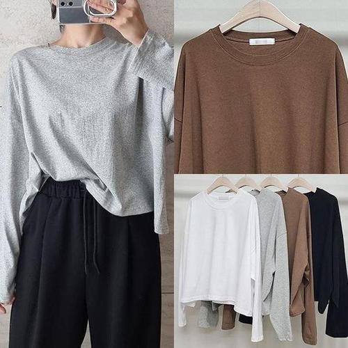 [셀러허브_여성트랜드패션]여성 숏티 루즈핏 오버핏 빅사이즈 코튼 크롭 S593 66-110 긴팔 티셔츠