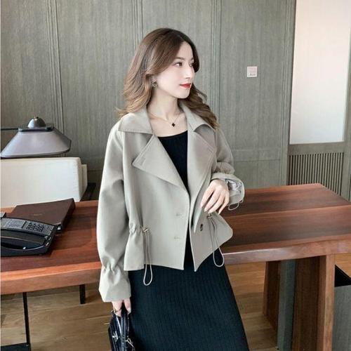 패션 라펠 숏 트렌치코트 여성 더블 브레스티드 포켓 재킷 여성 가을 겨울 신상 오피스룩 솔리드 아우터