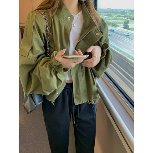 Skyciky 카키색 숏 트렌치 코트 여성 소형 체형에 적합한 한판 스타일 루즈핏 슬림핏 베이직 외투 MC179