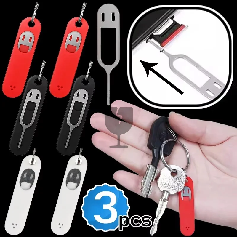 분실 방지 SIM 카드 이젝트 핀 니들 (보관 케이스 포함) 범용 휴대폰 스틸 이젝터 핀 SIM 카드 트레이 오프너 키링 후크