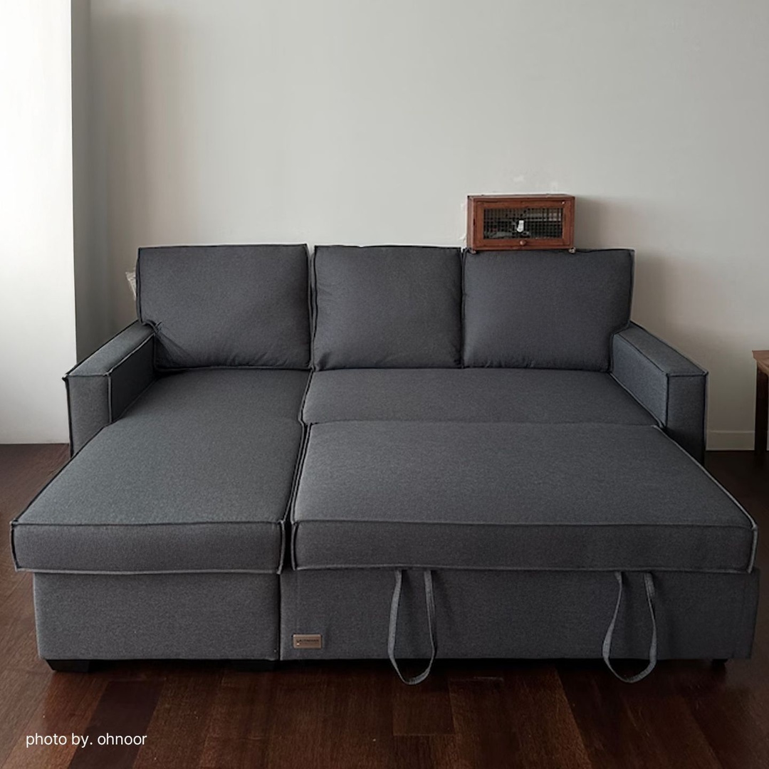 에보니아 이지백 수납형 카우치 소파베드 3인용 확장형 아쿠아스웨이드텍스