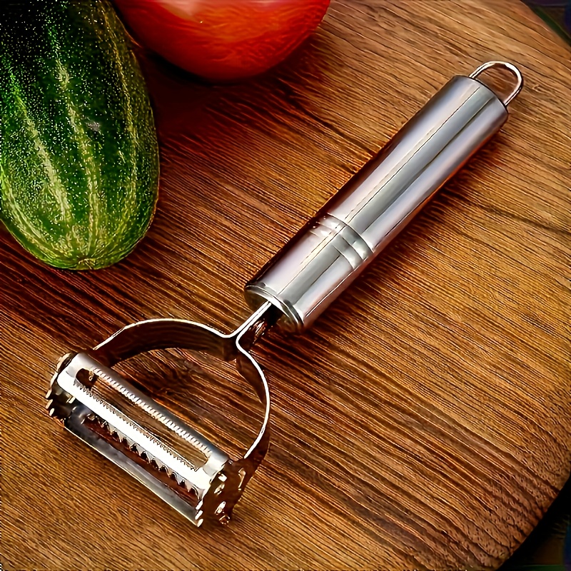 TEMU 스테인리스 스틸 야채 슬라이서 및 필러 - 인체공학적 손잡이, 감자, 당근, 오이에 적합한 날카롭고 효율적인 다기능 주방 도구, 안전하고 사용하기 쉬운 현대적 디자인, 견고한 구조, 가정 요리에 필수품. 11개의 휴일에 사용 가능
