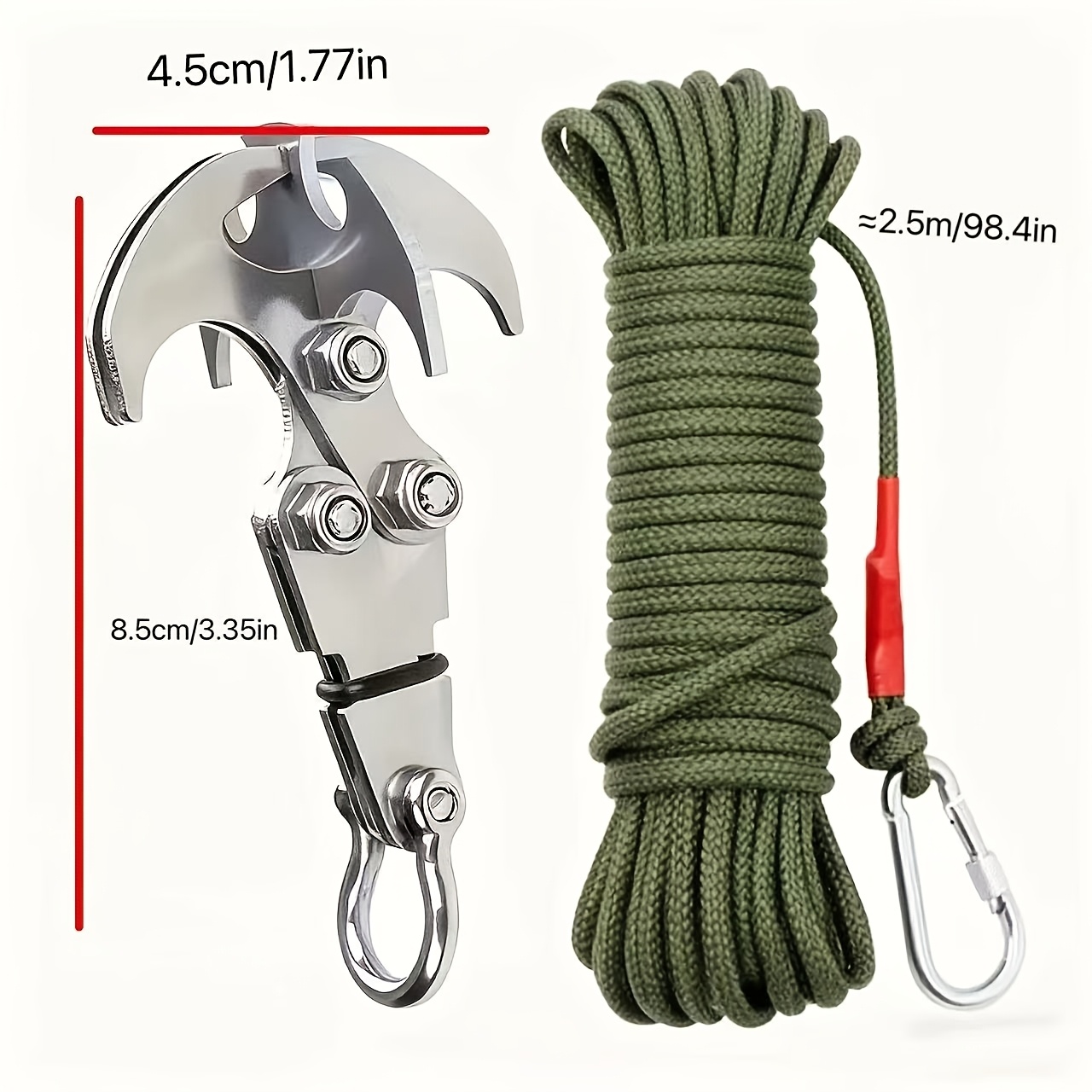 TEMU 2개 세트 로프 포함 스테인리스 스틸 접이식 훅, 다목적 야외용, 내구성 강화된 네발 디자인, 가정용 소품 걸이, 주방, 정원, 실내, 야외, 공구 창고, 등산 배낭, 캠핑 텐트 설치, 의류, 로프, 야외 장비, 나뭇가지와 수생식물 수거용, 휴대용 멀티툴
