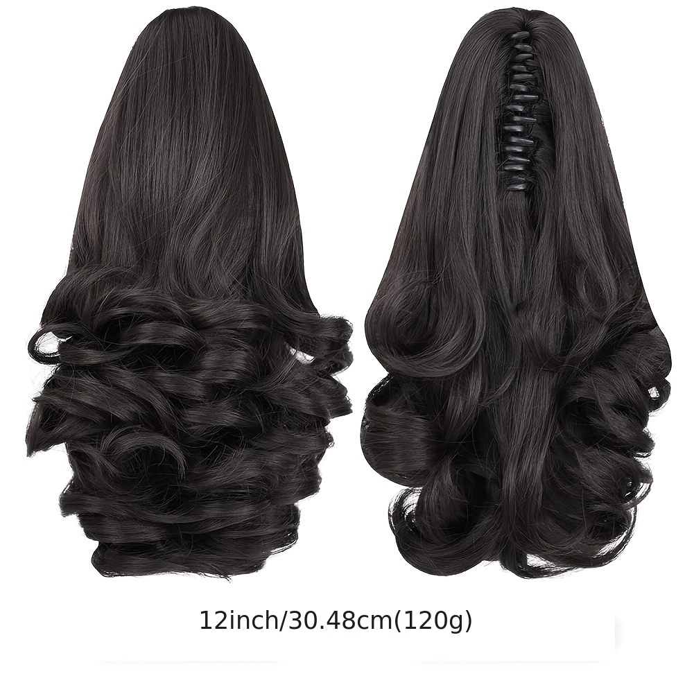TEMU 여성용 우아한 12인치 클로 클립 포니테일 익스텐션 - 자연스러운 블랙 컬리 웨이브 합성 헤어피스, 착용하기 쉽고 편안한 통기성, 모든 행사에 다용도, 포니테일 헤어 익스텐션