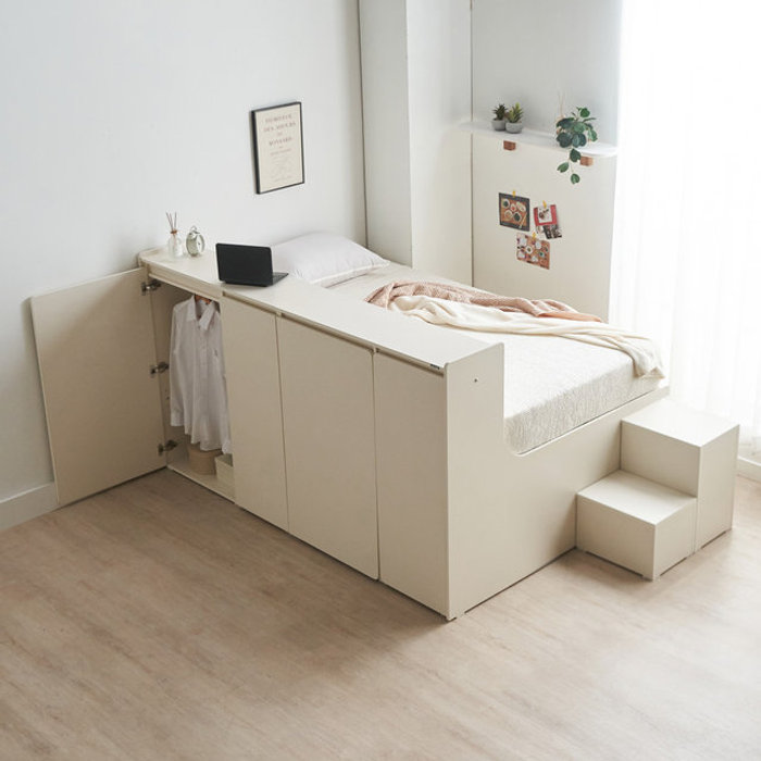 에보니아 로미 공간 분리 수납 수퍼싱글 침대 프레임 옷장B형(헤드형) 계단수납 포함