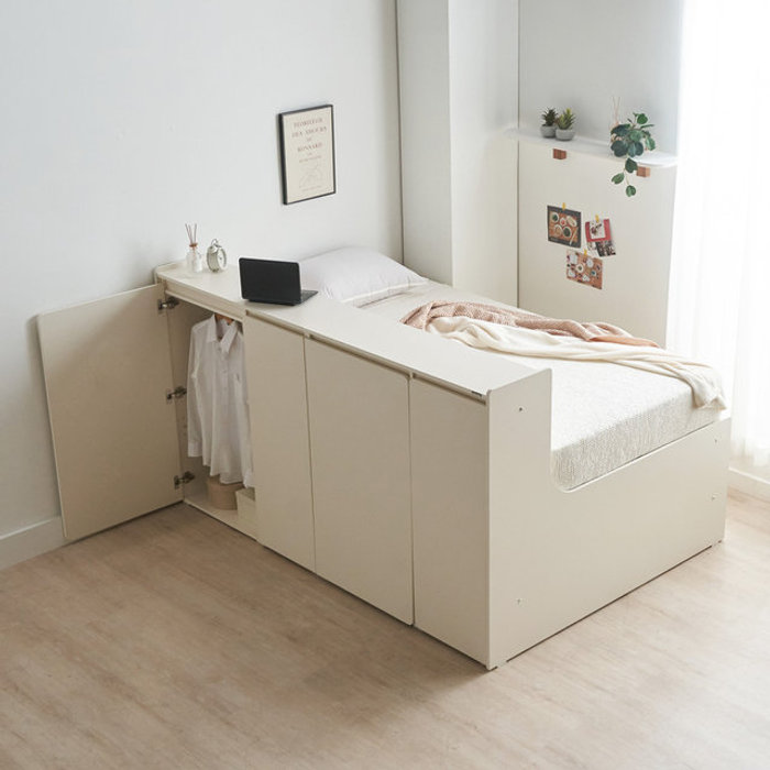 에보니아 로미 공간 분리 수납 수퍼싱글 침대 프레임 옷장B형(헤드형) 계단수납 제외