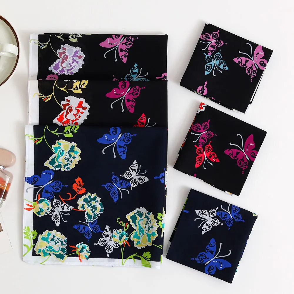 여성용 순면 프린트 손수건, 구식 나비 꽃 손수건, 여름 나들이를 위한 휴대용 손수건, 결혼식 기념품