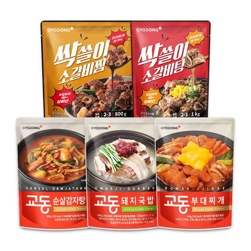 교동 인기 국탕류 5종(소갈비찜+소갈비탕+순살감자탕+부대찌개+돼지국밥)