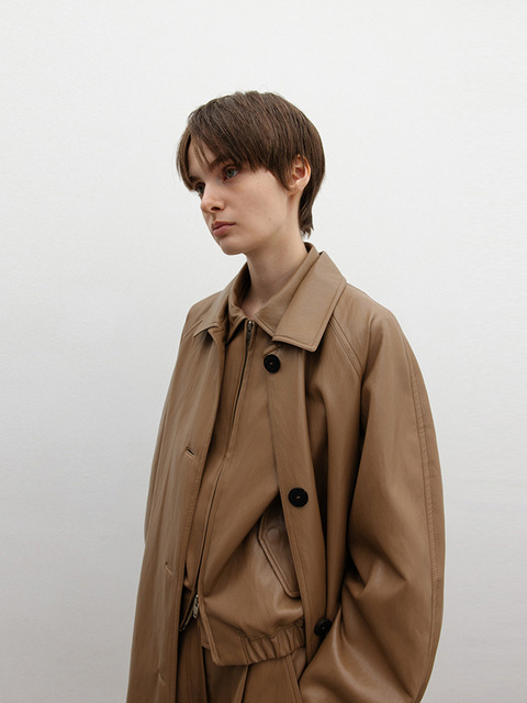[더룸] 비건 레더 맥 코트_코코아