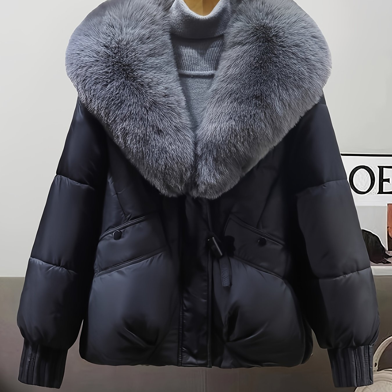 TEMU 여성용 고급 루즈 캐주얼 가을/겨울 신상 패션 따뜻한 인조 퍼 대형 칼라 탈부착 우아한 코트