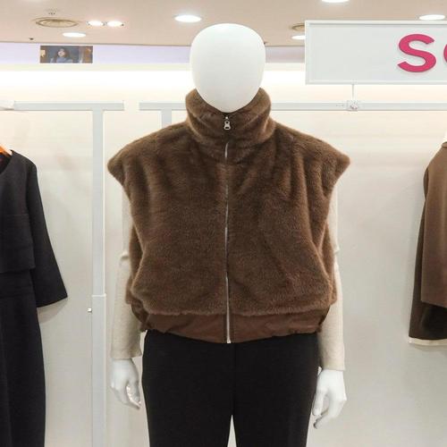 [숲]SOUP 밑단 스트링 하이넥 짚업 인조퍼 베스트() SBADB80