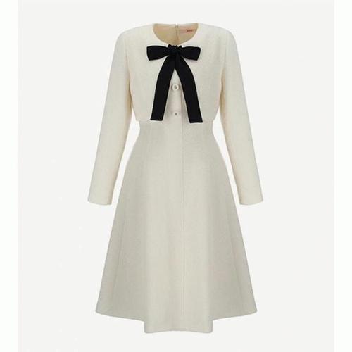 [숲]SOUP 플레어 배색 리본 타이 원피스()_K SB2OPM3