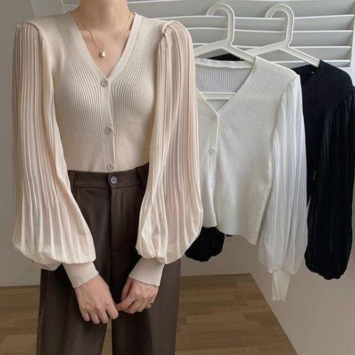 [에이치플러스몰]G125826_쉬폰주름 벌룬소매 니트가디건