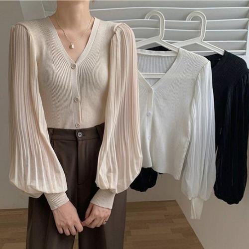 [셀럽하우스]여성가디건 TTWQ6734 플리츠소매 니트블라우스 쉬폰 F006421 니