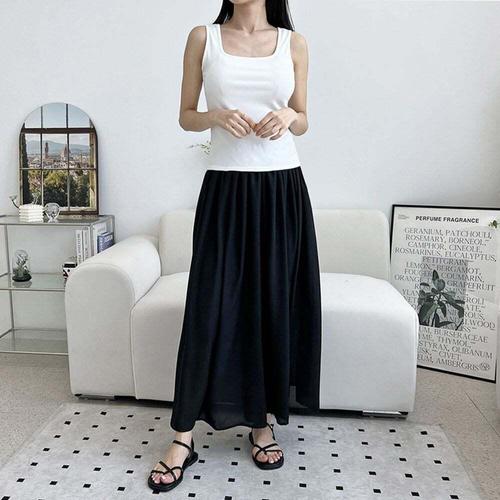 무니유유 쉬폰 시원한 쿨 밴드 플레어 와이드 롱 팬츠 치마바지