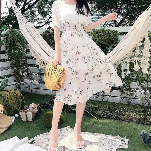 [모노무드]모노무드 플라워 쉬폰 원피스 스모크밴딩 캉캉 A라인 투피스st