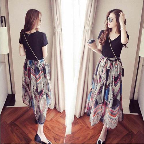 [엄지척]투피스같은 일체형 티셔츠 쉬폰 롱치마 원피스_19870806_667501