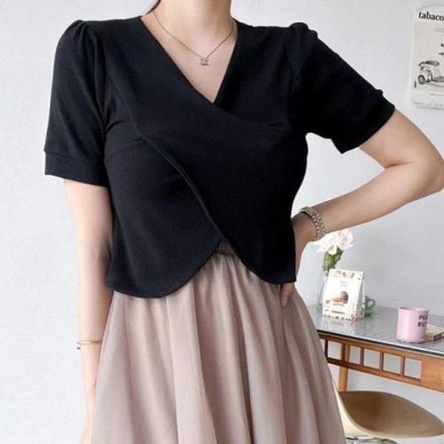 [엄지척]세트 쉬폰 여름티셔츠 블랙 브이넥 여성티셔츠_19660358_667501