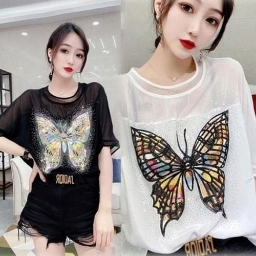 [엄지척]CESS 쉬폰 블라우스티 2색상 6283 큐빅나비_19644537_667501