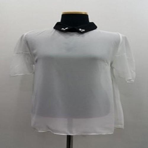 [엄지척]블라우스 반팔 쉬폰 카라 2컬러 큐빅 S1178 블링블링_19642726_667501