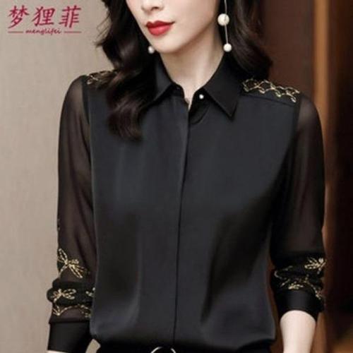 COSYEVNO 중년 엄마 셔츠 가을 라운드 쉬폰 스팽글 빅사이즈 심플 패션 루즈핏 엘레강스 캐주얼 편안한 긴팔 상의 CXJcs-43