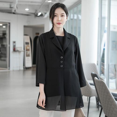 [모슬린]엄마옷 쉬폰 카라 롱 조끼 MQG126365 마담 미시 중년여성 빅사이즈 할머니옷 50대 60대 70대