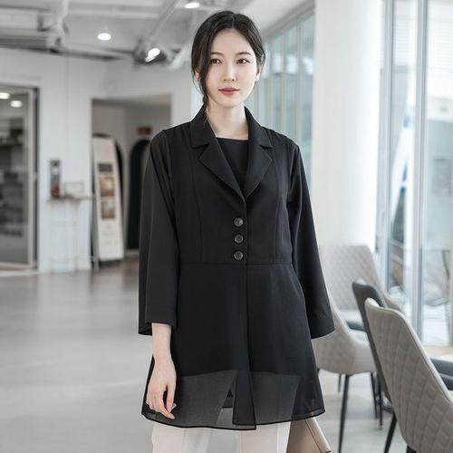 여성 여름 숄 카라 트렌치 빅사이즈 쉬폰 조끼 베스트 40-50대 미시 중년여성