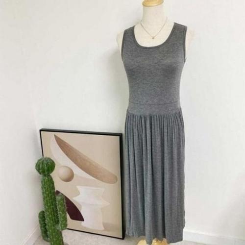 루어스룸 마들렌 라운드넥 나시 민소매 바스락 플레어 롱 원피스