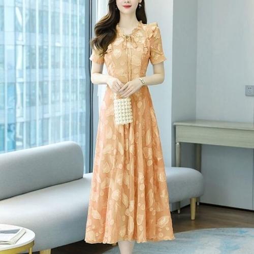 [엄지척]여성 여름 리프 반팔 쉬폰 슬림 롱 원피스_19913100_667501