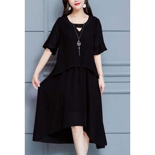 [엄지척]여성 여름 루즈핏 라운드넥 물결 쉬폰 반팔 원피스_19912561_667501